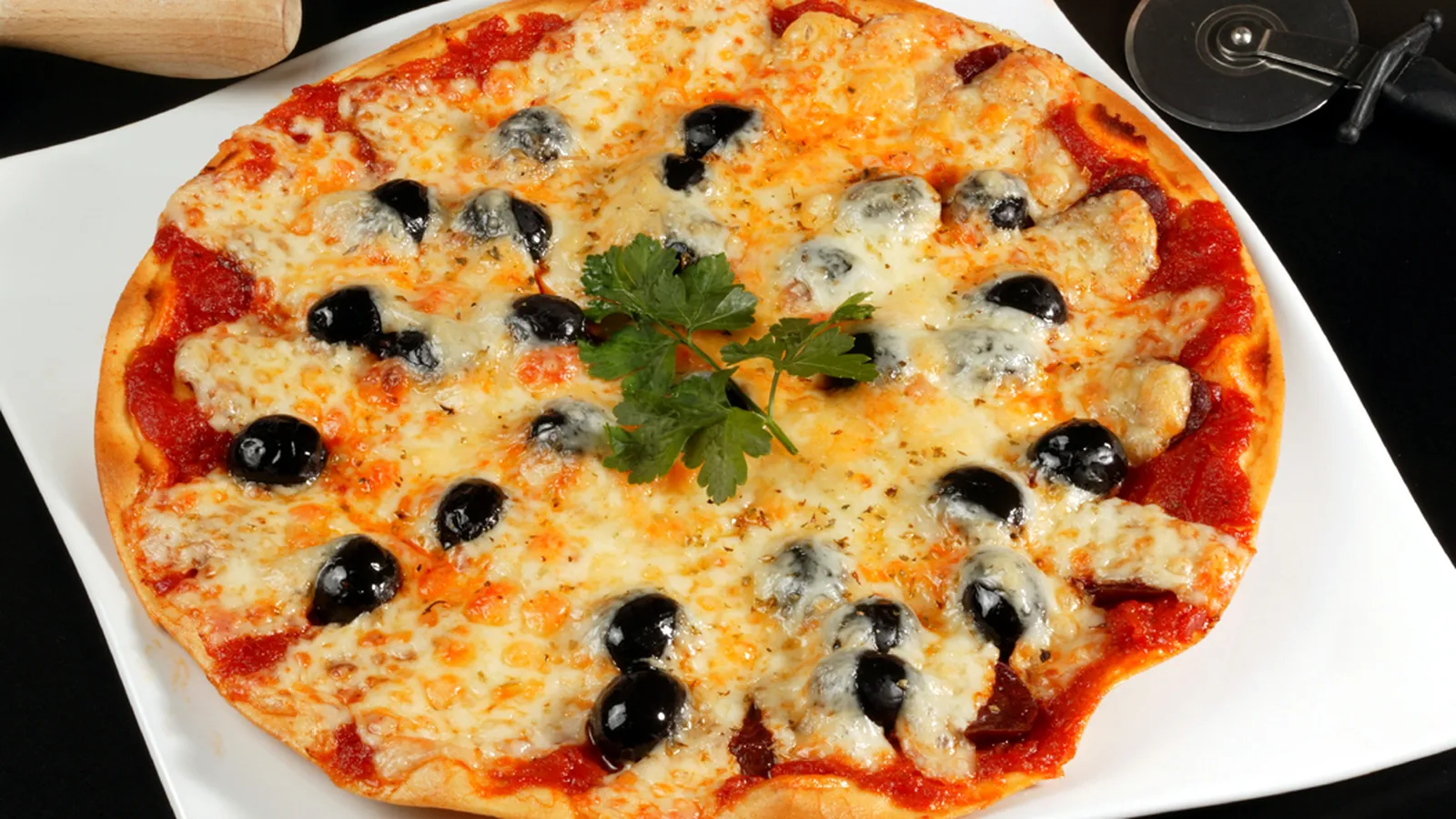 Disfruta de la receta de pizza manchega de la mano de Karlos Arguiñano, realizada con queso manchego, chorizo, aceitunas negras y salsa de tomate.