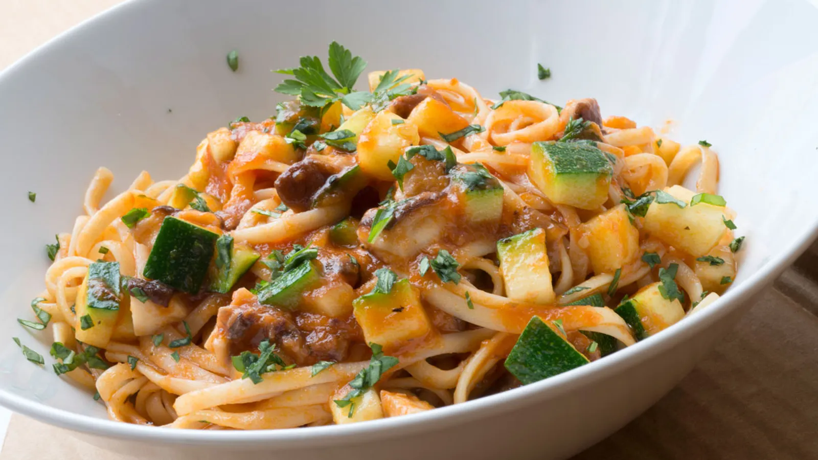 Receta de Karlos Arguiñano de tallarines acompañados de verduras cocinadas en el wok, sardina vieja macerada y salsa de tomate casera, un plato de pasta fácil y rápido de preparar.