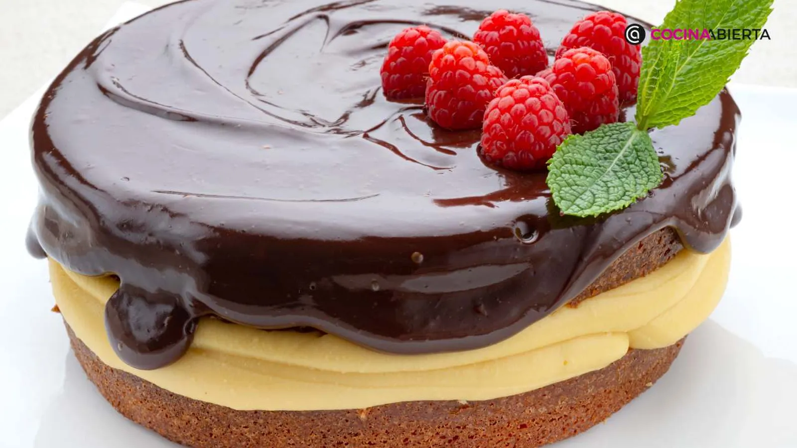 Deja reposar el pastel en la nevera durante unas horas para que la crema y la cobertura se asienten bien.