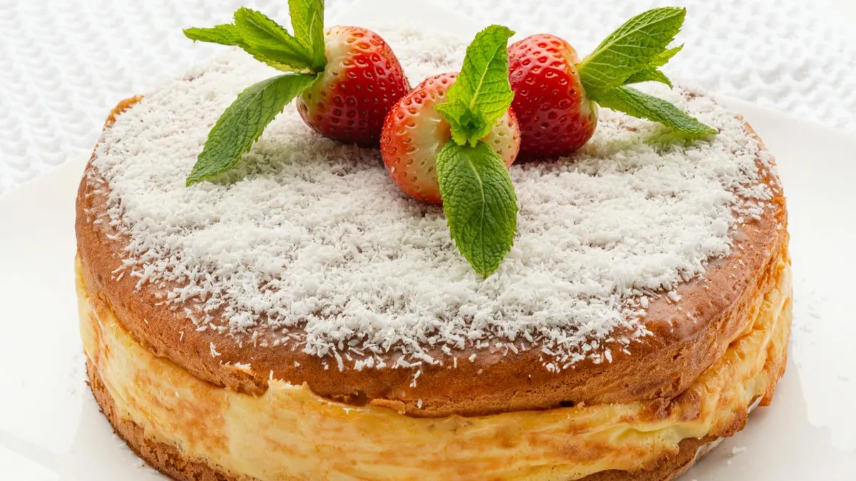 Aprende a preparar un pastel de limón con la receta de Eva Arguiñano, cubierto con coco rallado y decorado con fresas.