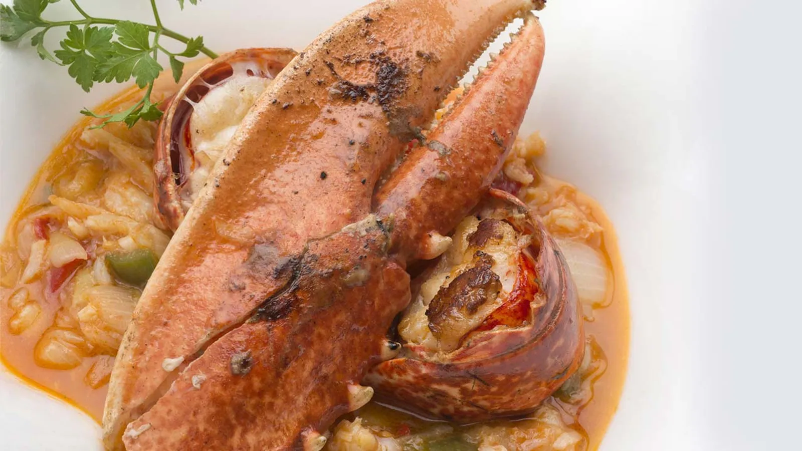Sirve el ajoarriero con el bogavante y decora con una ramita de perejil.