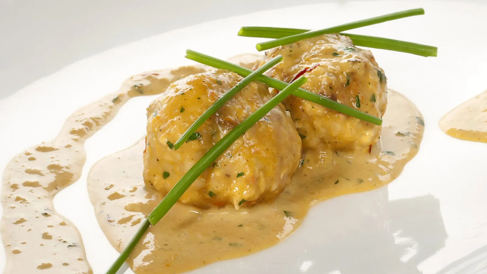 Vierte la salsa sobre las albóndigas de pez espada y cocina suavemente el conjunto durante 5 minutos. Espolvorea con perejil picado y sirve en un plato. Decora con unos bastones de cebollino.