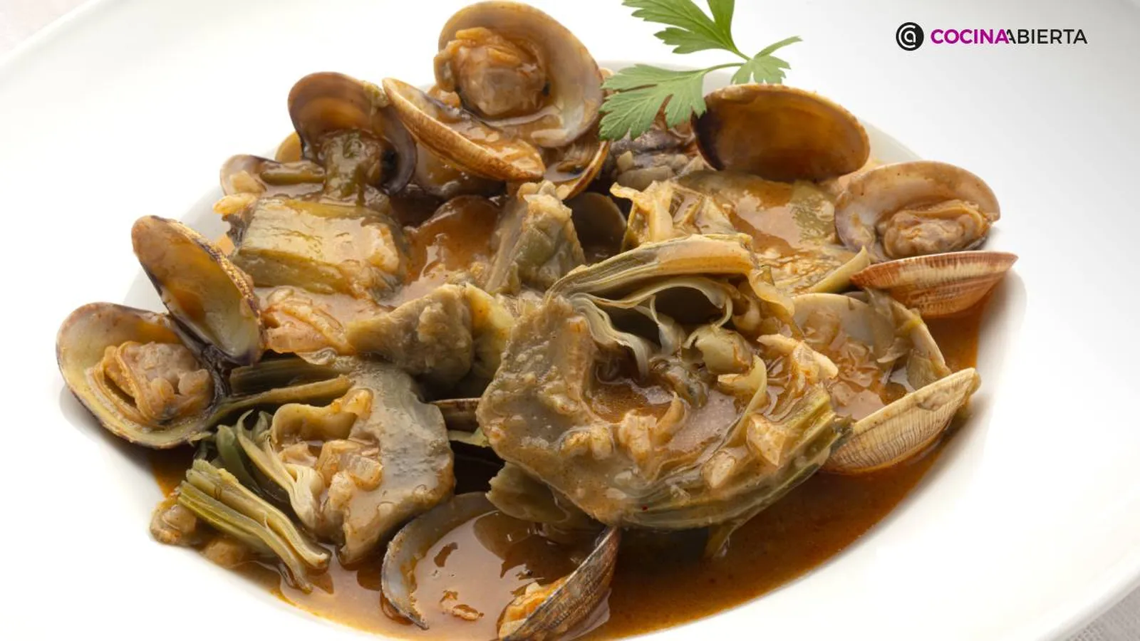 Receta de Almejas en salsa roja con alcachofas paso a paso