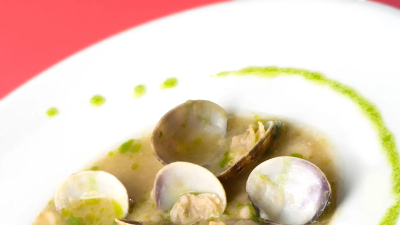 Alubias blancas con almejas y aceite de cebollino. Karlos Arguiñano prepara de forma sencilla alubias blancas con almejas salteadas acompañadas de un aceite de cebollino.