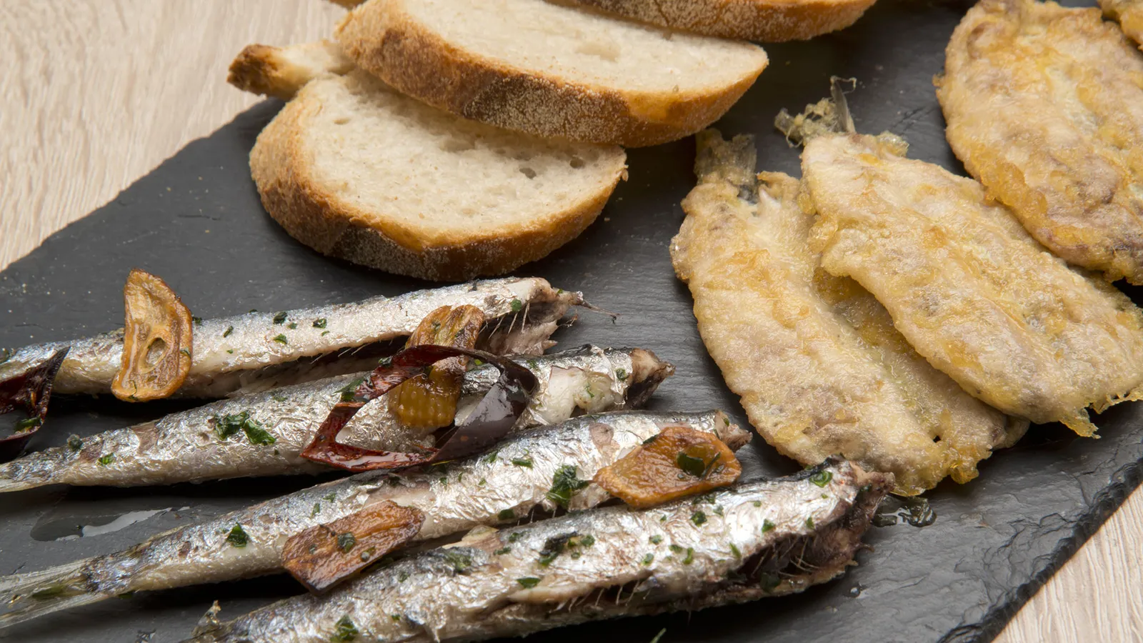 Anchoas al ajillo y anchoas rebozadas