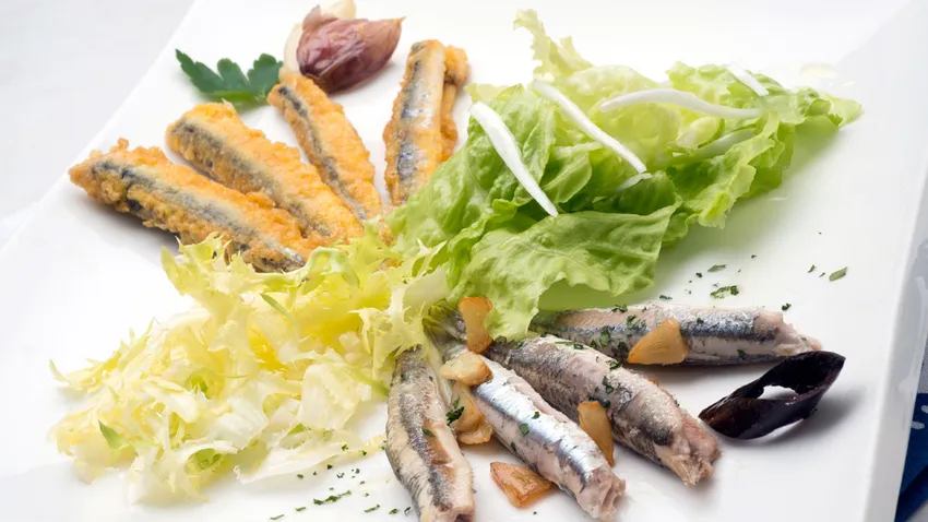 Receta de Karlos Arguiñano para preparar anchoas de dos maneras diferentes: anchoas rebozadas y anchoas fritas, en los dos casos acompañadas de ensalada.