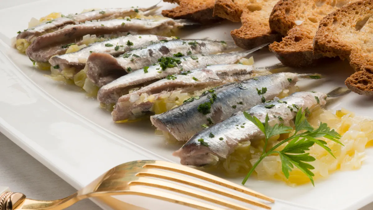 Receta de Karlos Arguiñano de anchoas a la papillote acompañadas de cebolleta, puerros, ajos frescos y tostas de pan.