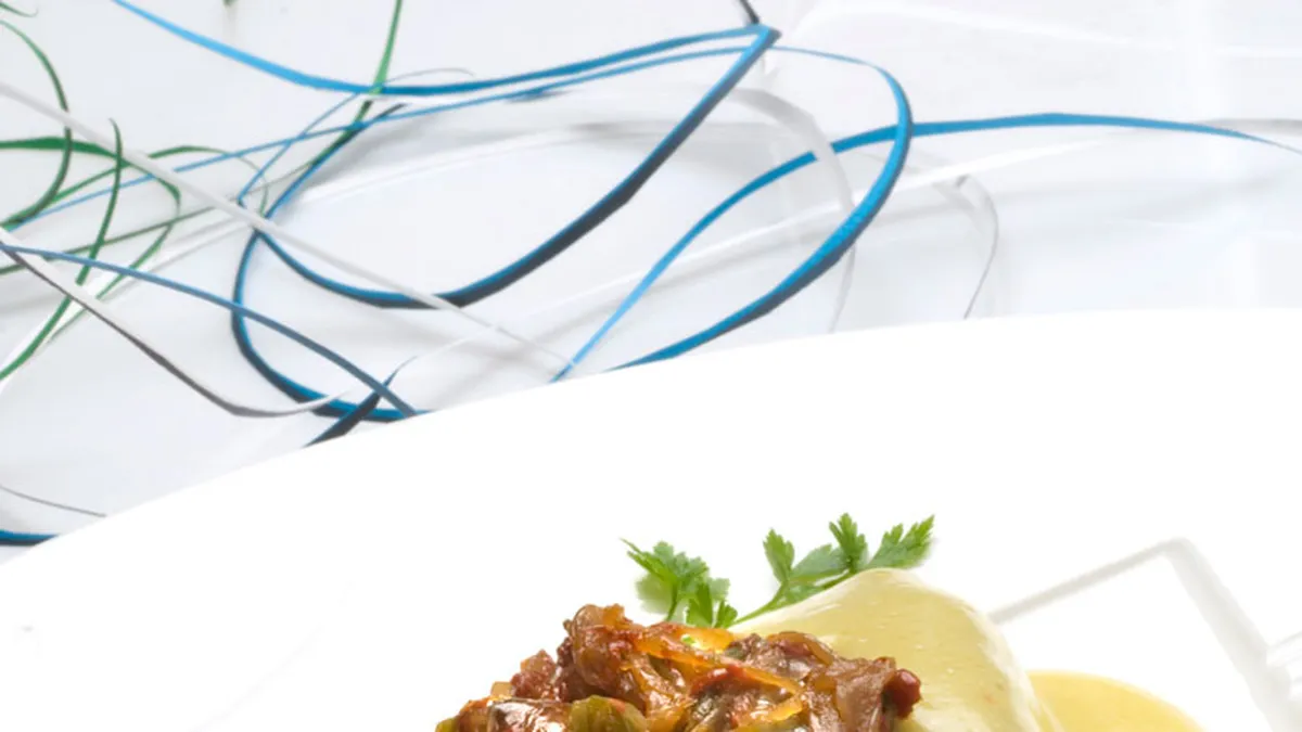 Agrega la carne del pimiento choricero a las verduras pochadas, dale un toque de calor y retira del fuego. Reserva.