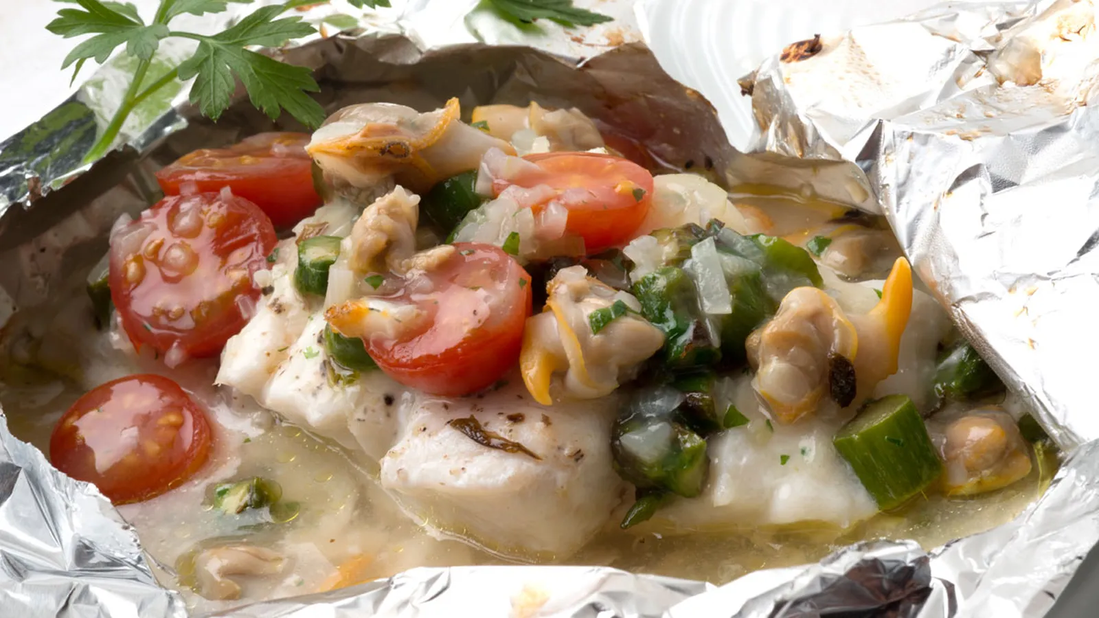 Receta de Karlos Arguiñano de bacalao fresco con berberechos y verduras cocinado en el horno al papillote.