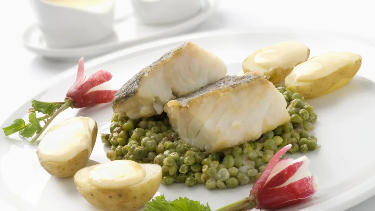 Bacalao frito con guisantes