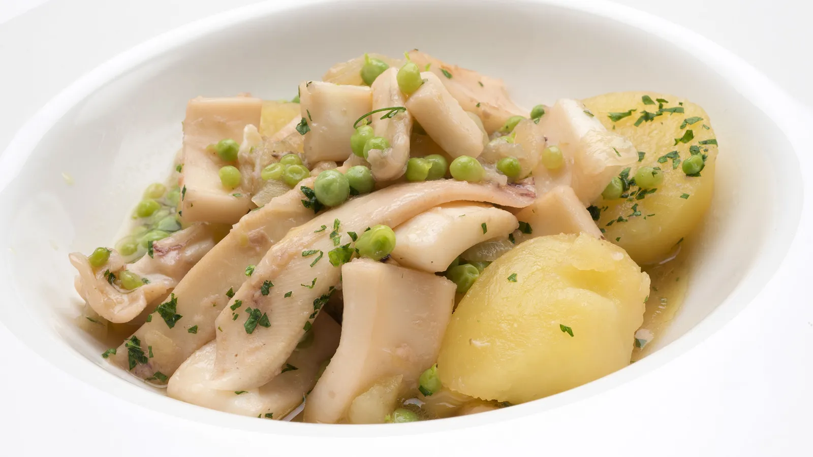 - Calamares con patatas y guisantes