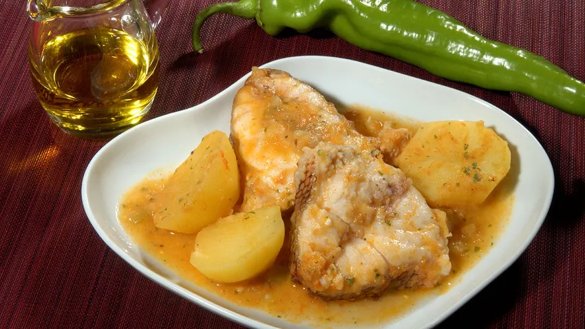 Receta de guiso de itsakara o cabracho con patatas y tomates. Un plato de pescado elaborado en la cazuela.
