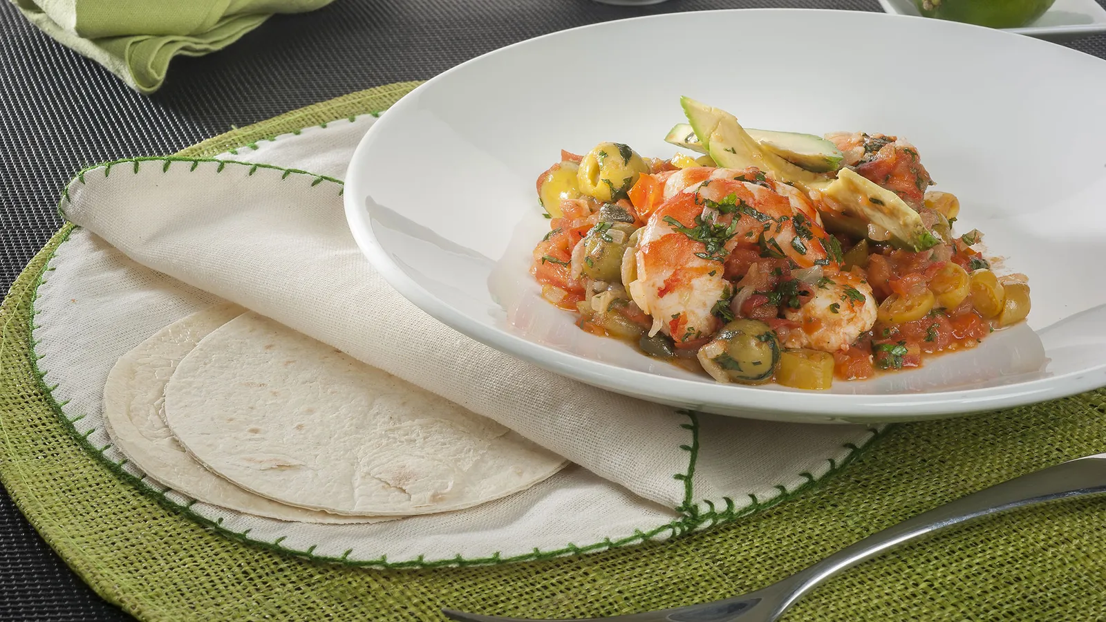 Enrique Fleischmann nos presenta un plato típico de Veracruz (México) a base de camarones con jitomate, cebolleta, guindillas, alcaparras, aceitunas y aguacate.