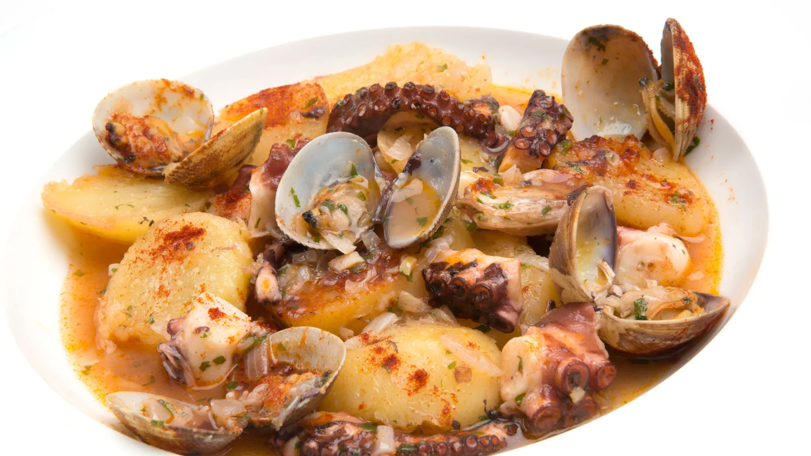 Cazuela de patatas, pulpo y almejas