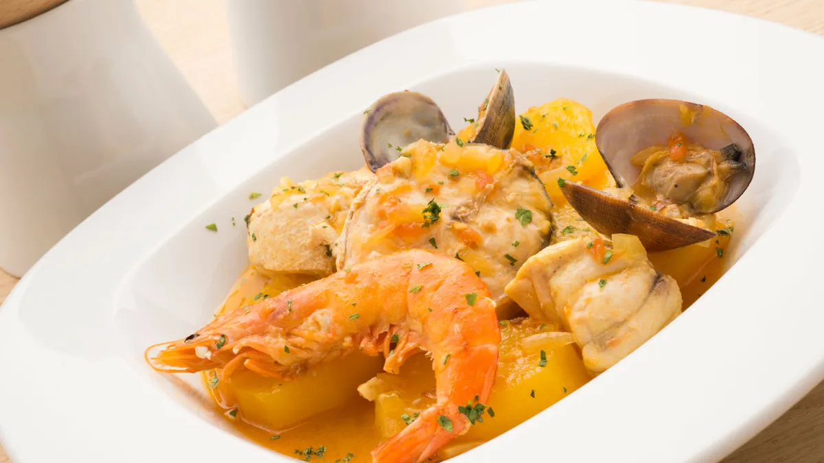 Karlos Arguiñano elabora una receta de suquet de pescado o cazuela de pescado, un guiso marinero tradicional de la cocina catalana.