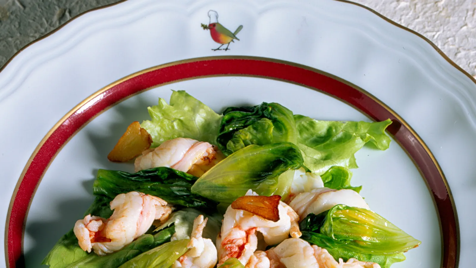 Cigalas salteadas con hojas de lechuga