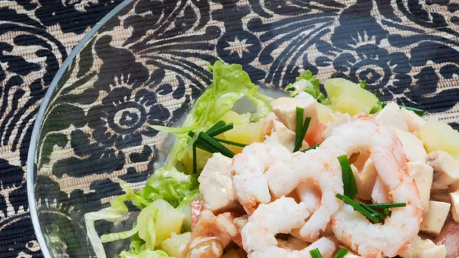 Cóctel de pollo y gambas