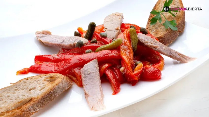 Descubre cómo hacer una ensalada de pimientos morrones con ventresca de atún al estilo de Karlos Arguiñano. Es un plato sencillo y saludable que combina pimientos asados, alcaparras, pepinillos en vinagre y unas rebanadas de pan tostado.