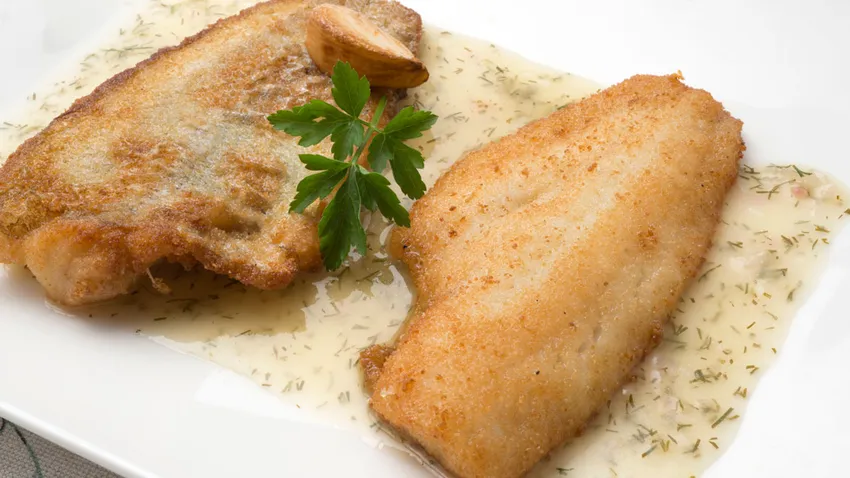 Fanecas empanadas con salsa de limón