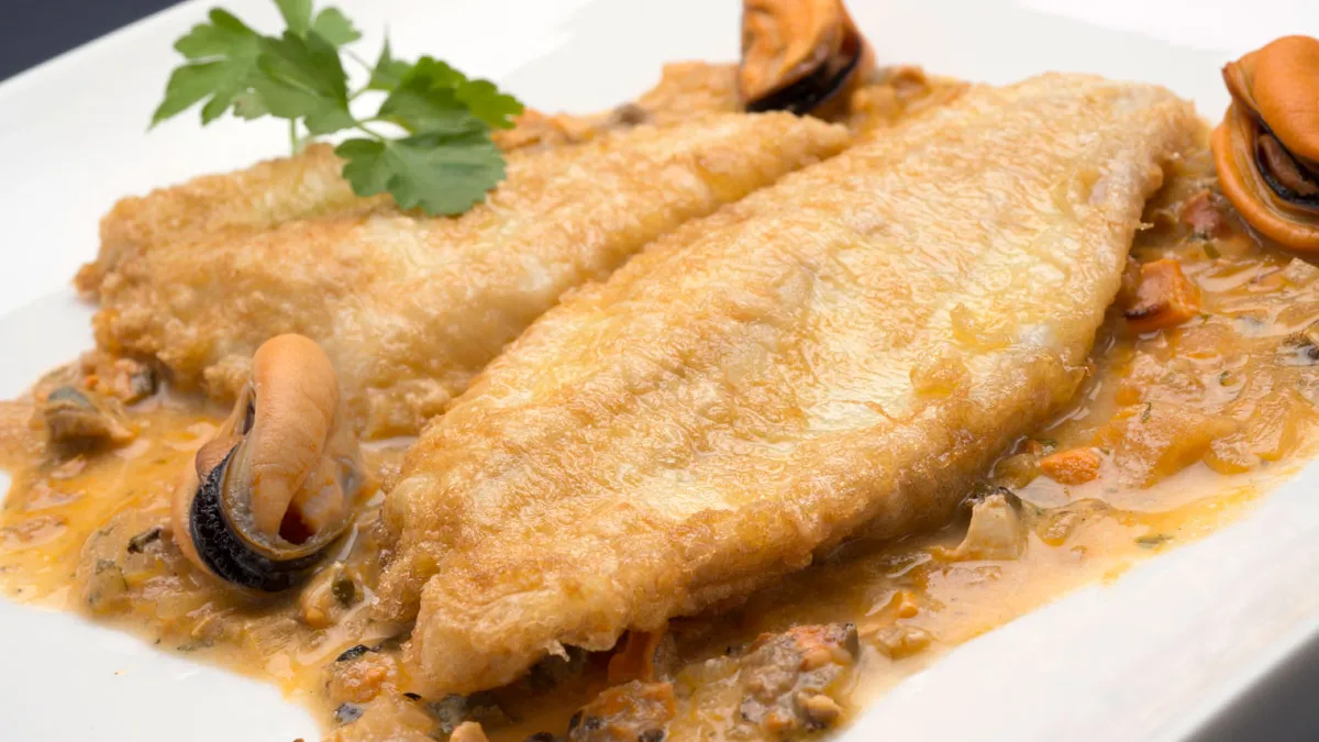 Filetes de rodaballo con salsa de mejillones