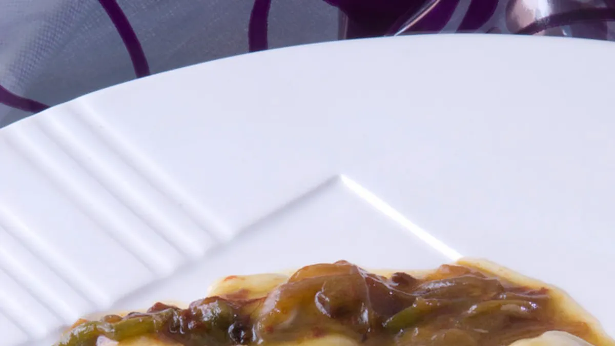 Corta las cebollas y los pimientos verdes en juliana y póchalos en una sartén con un chorrito de aceite y una pizca de sal durante 15-20 minutos. Pasado este tiempo, añade la carne del pimiento choricero.
