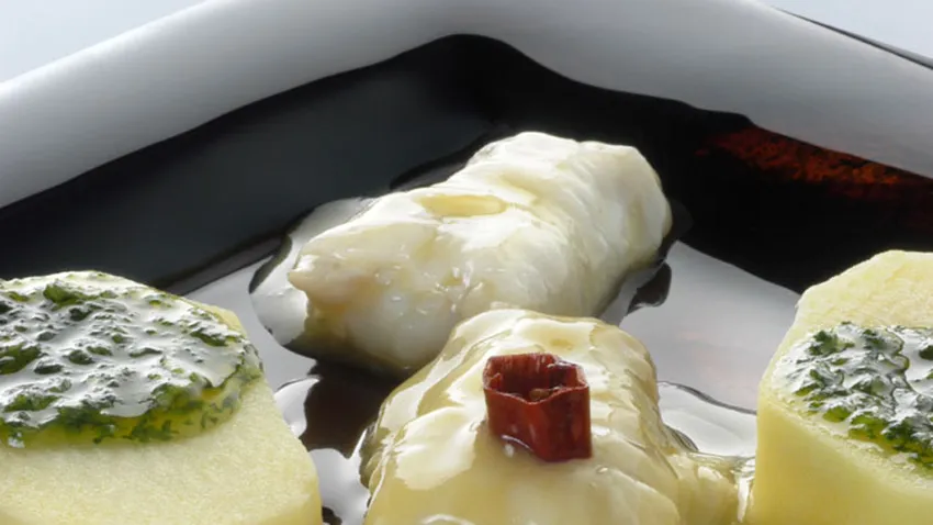 Kokotxas de bacalao con patatas, una receta de pescado clásica del País Vasco elaborada por el cocinero Karlos Arguiñano.