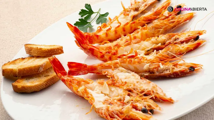Esta preparación consiste básicamente en abrir el langostino como si fuera un libro. Así abierto, se cocina con la piel o cáscara hacia abajo, en contacto con la sartén o bandeja, es decir, con su 'espalda' pegada al metal. Luego, se le añade por encima una salsita suave de ajo, sal y zumo de limón. Nada más. Tan sencillo que cualquiera puede hacerla.