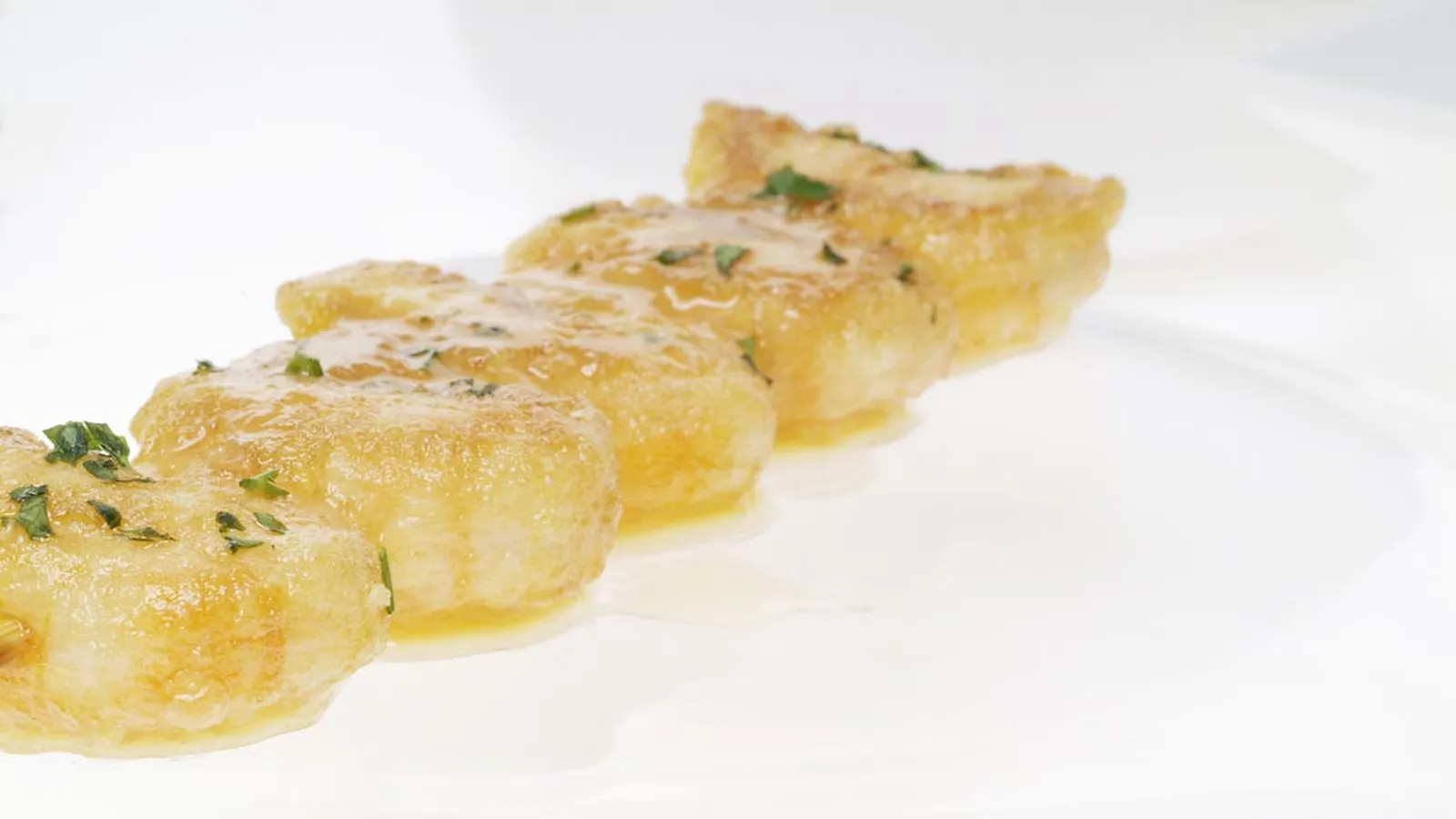 Receta de brochetas de langostinos a la gabardina o rebozados y acompañados de una salsa de curry. Plato elaborado por Eva Arguiñano.