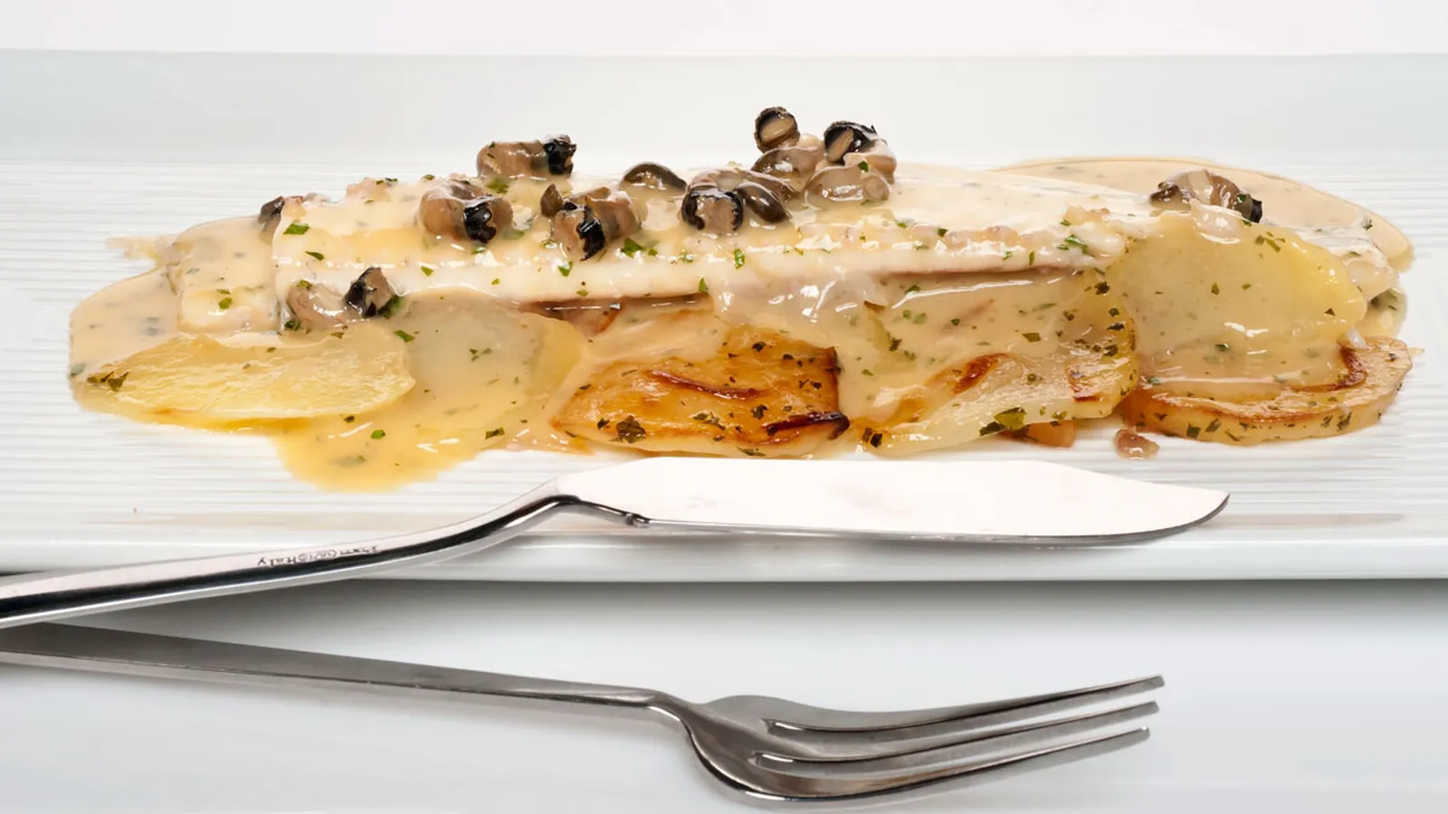 Lenguado asado con salsa meunière