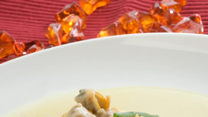 Deliciosa receta de lomo de merluza con salsa de berberechos, Karlos Arguiñano realiza este plato con caldo de berberechos y ajos.