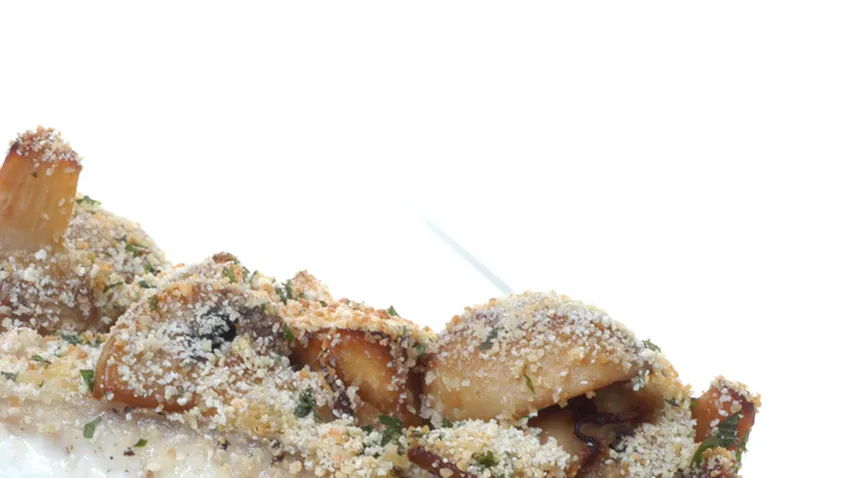 Receta de Lomos de rodaballo con champiñones. Karlos Arguiñano prepara un rodaballo a la plancha con champiñones y gratinado a la provenzal.