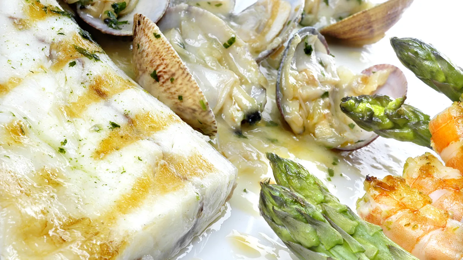 Lubina con salsa de almejas