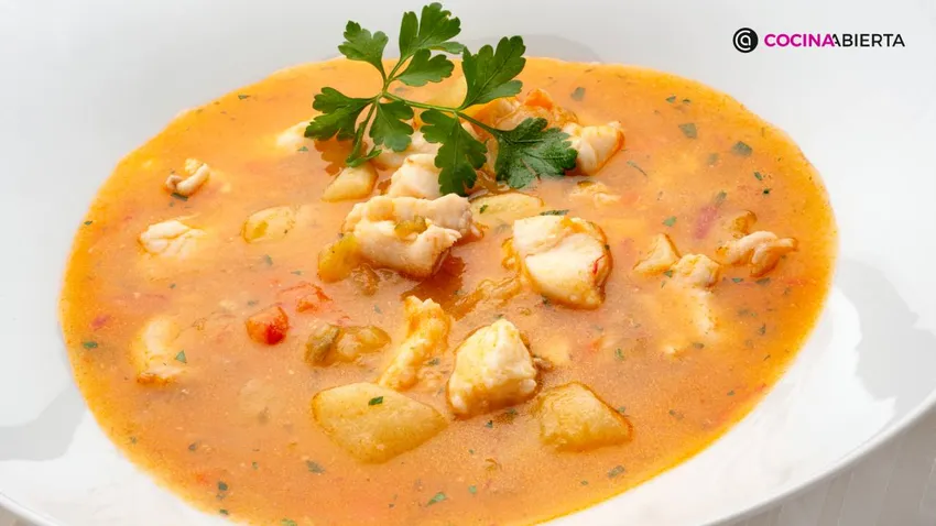 La elaboración es simple, solo requiere tiempo para que las patatas se cuezan junto al sofrito de pimientos, ajo, cebolleta y carne de pimiento choricero. Después, solo falta añadir el caldo, el pescado en trozos y un poco de perejil picado.