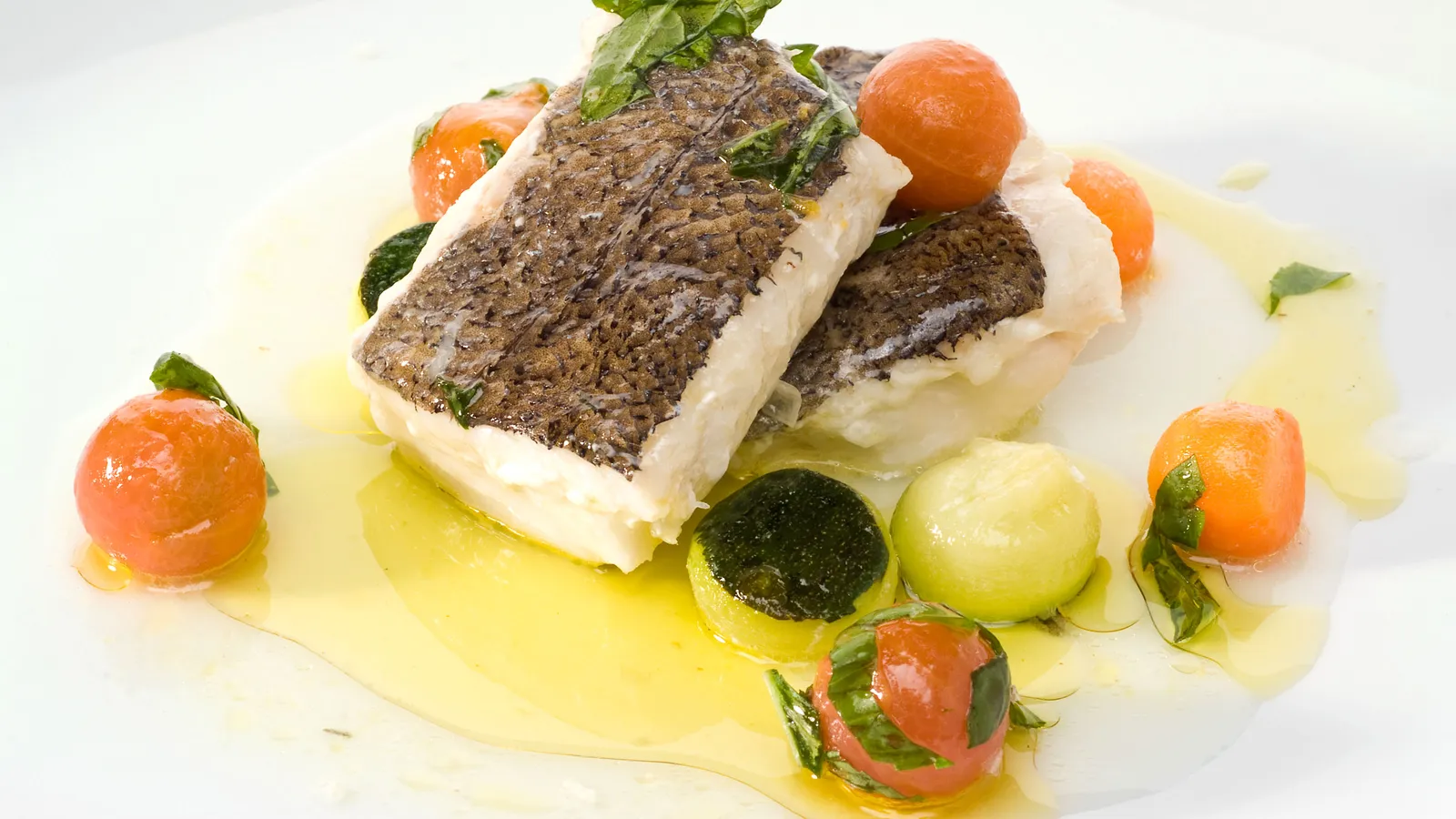 Abre el papillote, retira el limón y pon la merluza con las verduras y el juguito en un plato. Riega con al aceite de albahaca y sirve.
