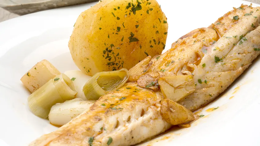 Karlos Arguiñano elabora una receta de perlón a la plancha acompañado de patatas y puerros cocidos y refrito de aceite, ajo y pimentón.
