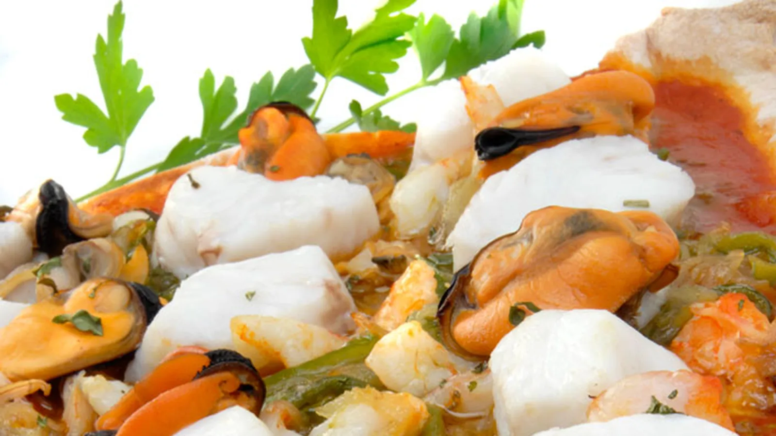 Receta de pescado y marisco con albahaca. Karlos elabora una sabrosa y original pizza con pescadilla, mejillones, almejas y langostinos.