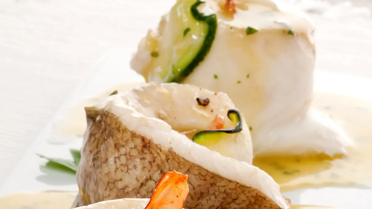 Sirve 3 popietas de gallo por comensal y salsea con el pil-pil.