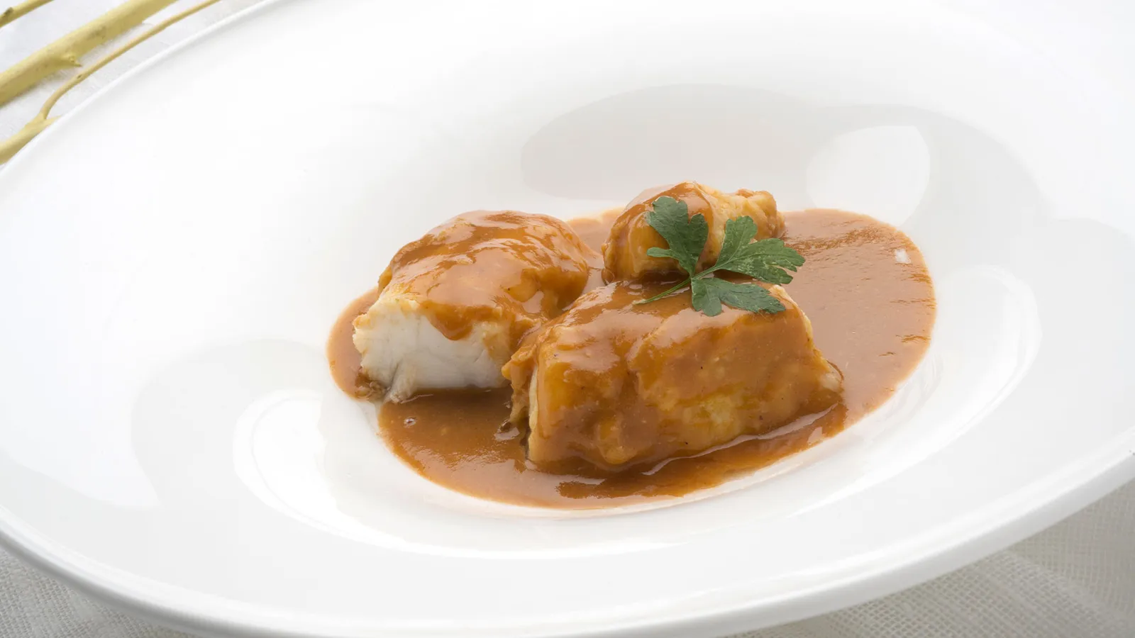 Sirve el rape a la americana y adorna con unas hojas de perejil.