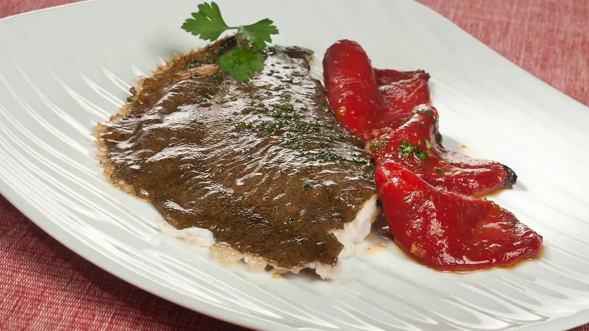 Receta de Bruno Oteiza de rodaballo al horno acompañado de un sofrito de ajos y pimientos del piquillo confitados en aceite, un plato clásico para disfrutar en Navidad.