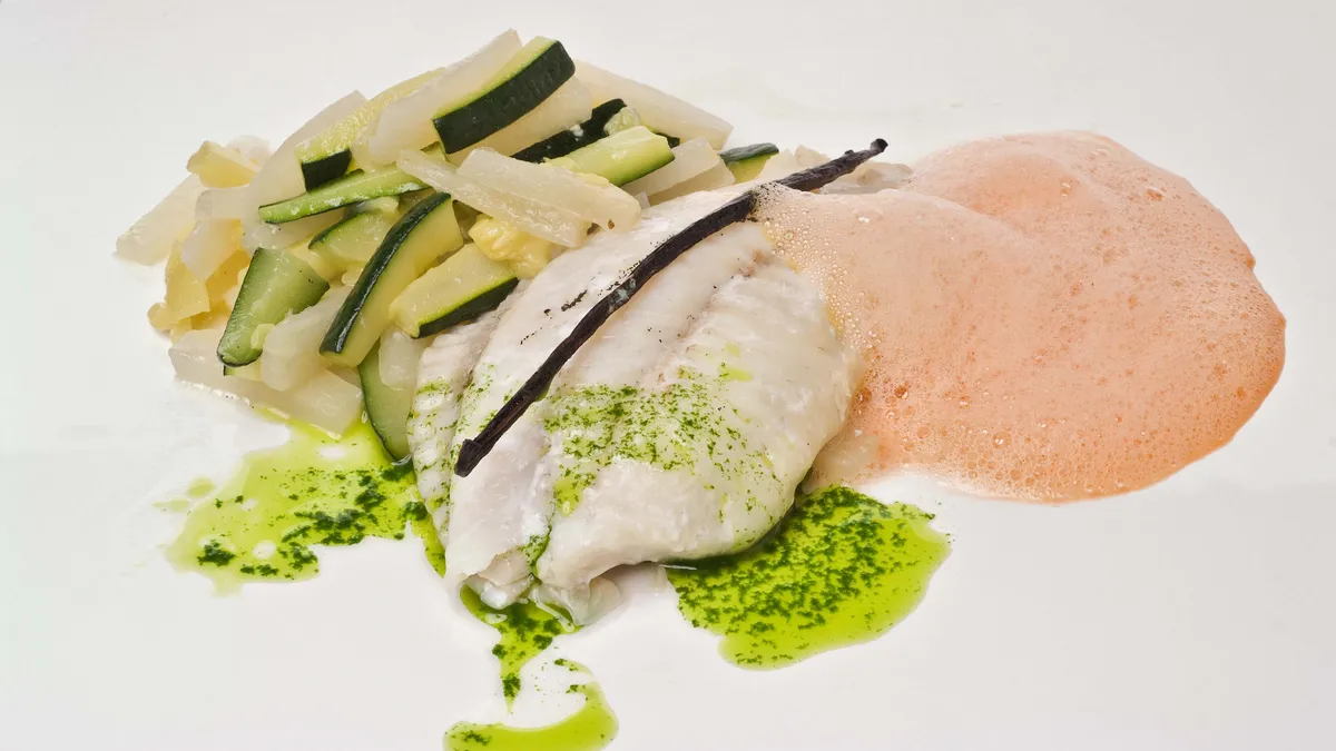 Rodaballo a la vainilla con espuma de zanahoria