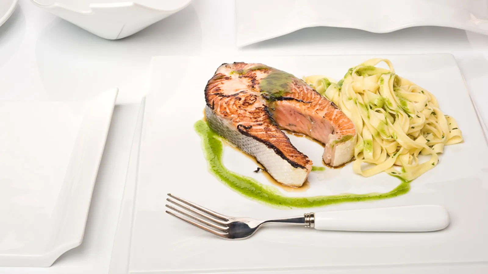 Salmón al pesto con pasta