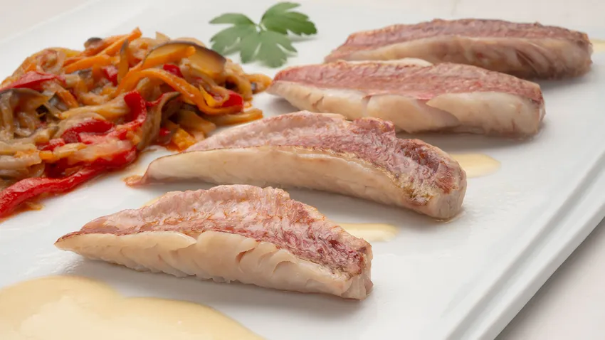 Elaboración de la receta Salmonetes a la plancha con verduras salteadas: