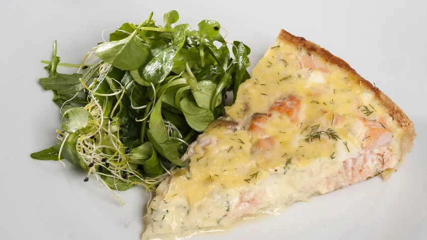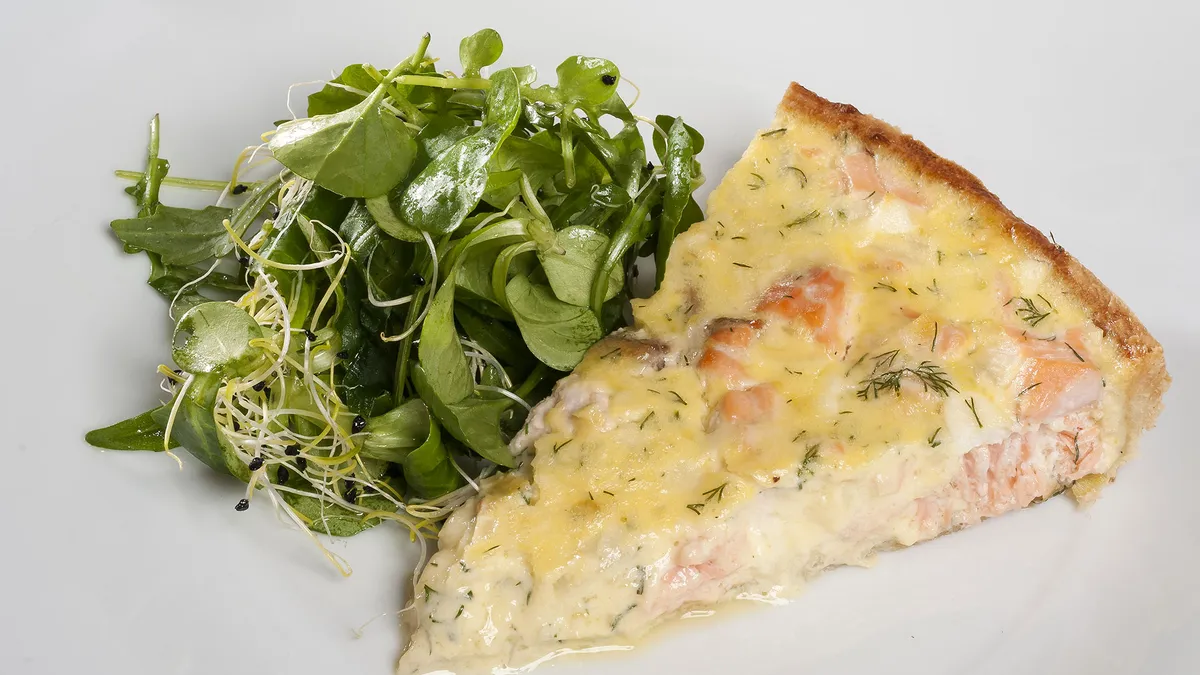 Bruno Oteiza prepara una quiche o tarta salada de salmón, eneldo y queso de cabra con masa casera acompañada de una ensalada verde.