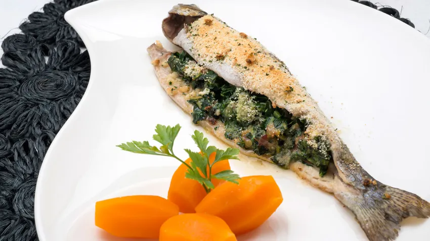 Trucha rellena de espinacas y jamón