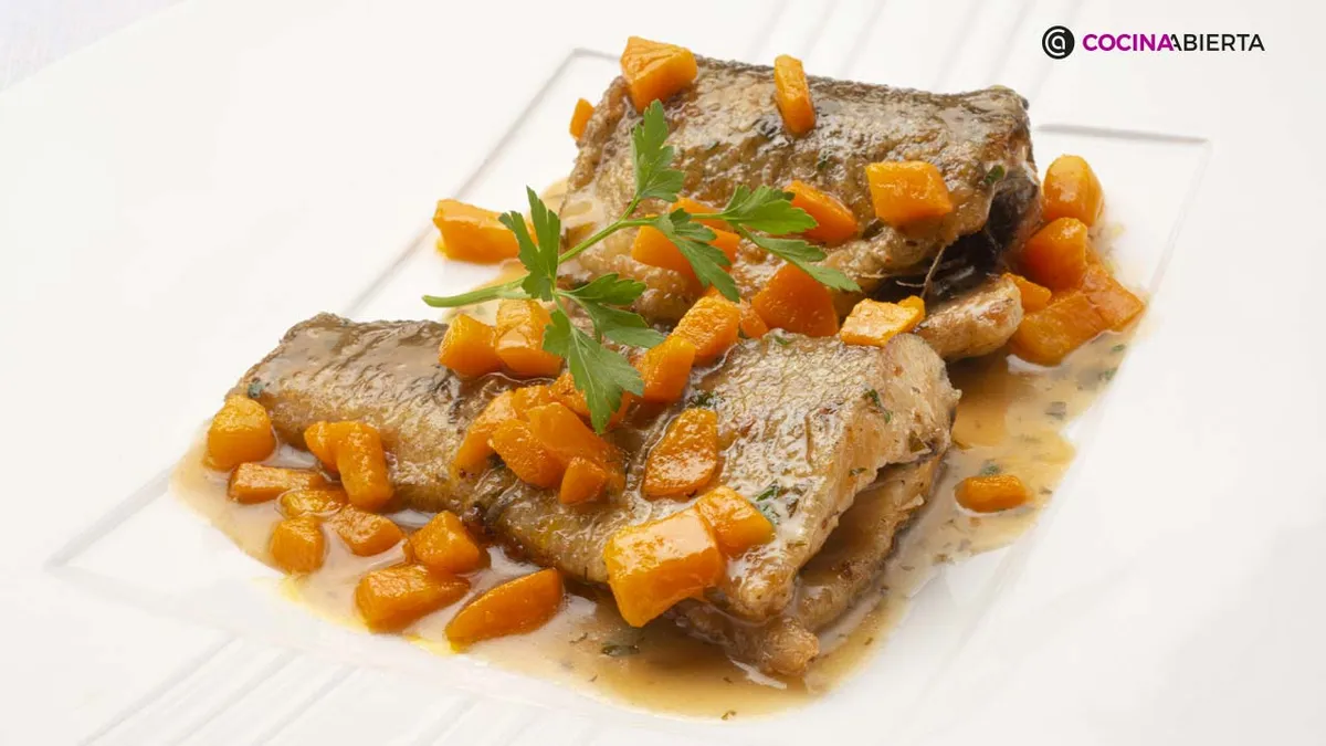La zanahoria lo que va a hacer es acompañar a la trucha con salsa meunière. Aunque en esta ocasión hemos optado por la zanahoria, este plato también se puede acompañar con brócoli, coliflor, judías verdes, guisantes o habitas.