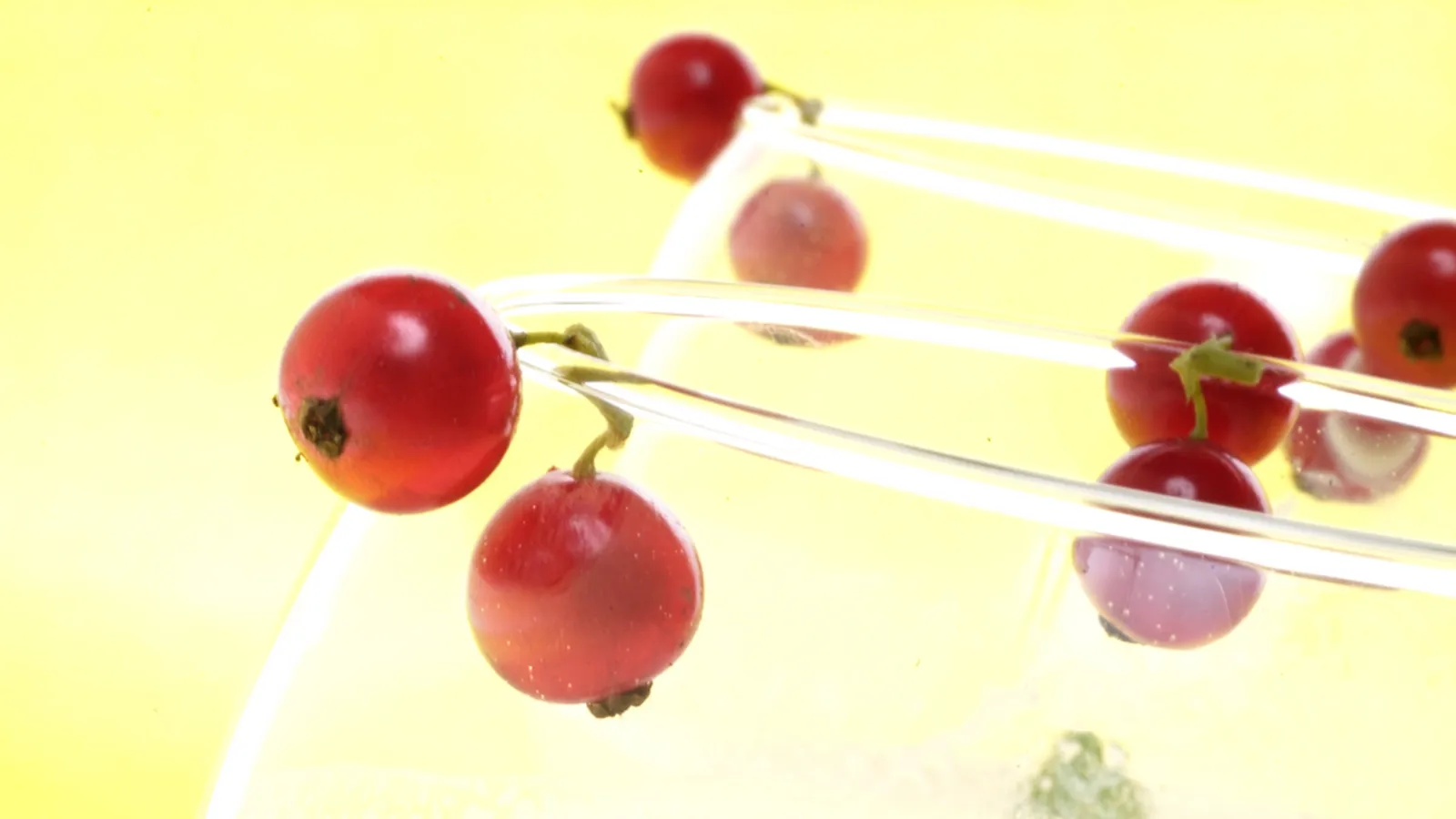 Sirve los batidos en copas y adorna con unas grosellas y unas hojas de menta.