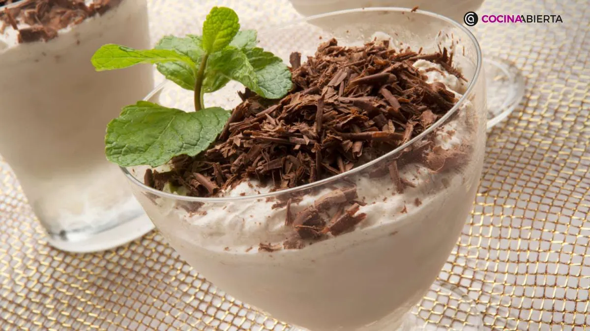 Saca las copas media hora antes de consumirlo, para saborear el biscuit de turrón. Con un cuchillo, raspa la tableta de chocolate negro para extraer virutas y espolvorea sobre cada copa. Adorna con unas hojas de menta frescas.