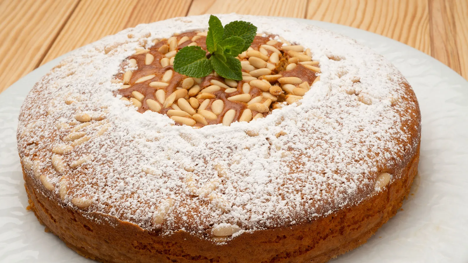 Unta un molde con un poco de mantequilla o aceite y espolvoréalo con un poco de harina. Vierte la masa y esparce por encima los piñones. Hornea el bizcocho a 180ºC durante 30-35 minutos aproximadamente. Deja templar y desmolda.