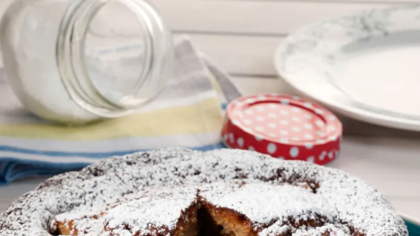 Receta de bizcocho de plátano con dátiles aromatizados con ron. Un postre elaborado por David de Jorge.