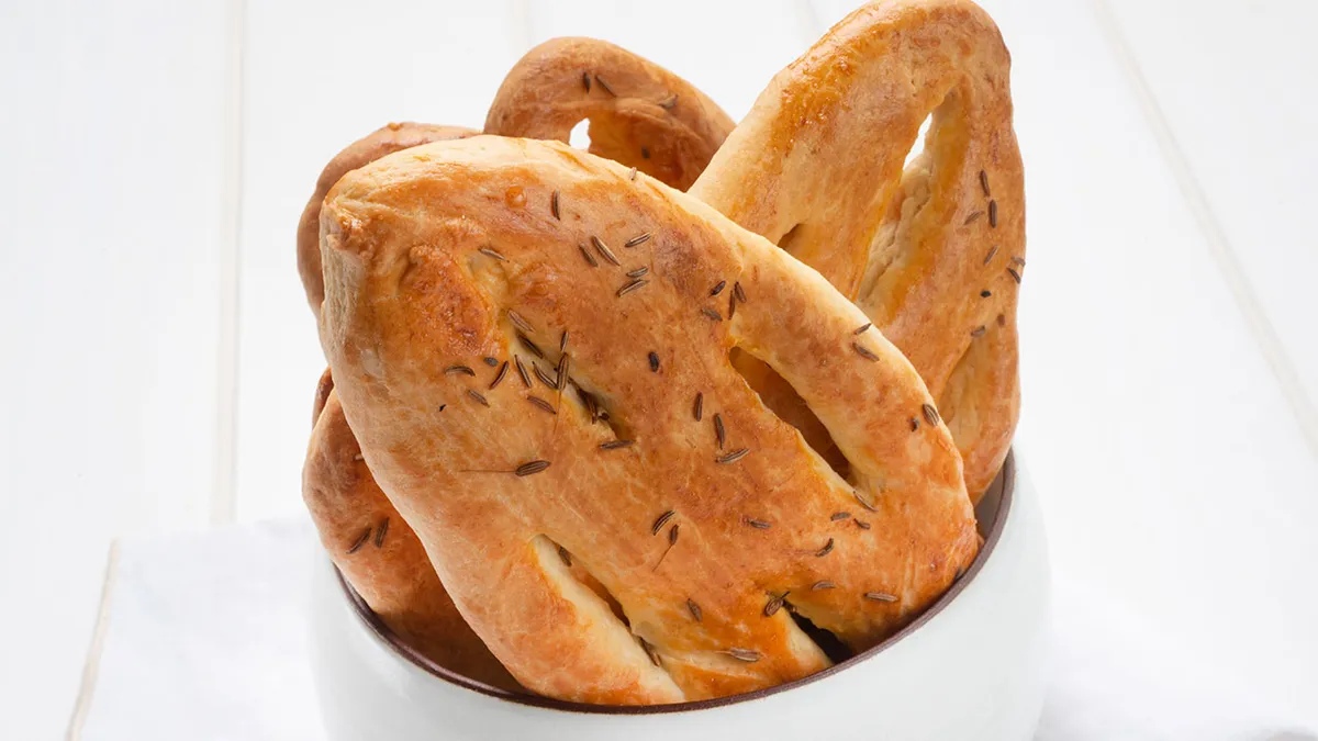 En estos bollos se asocia la harina con las semillas de alcaravea siendo éstas un suplemento que mejora la digestión del postre evitando la formación de gases.